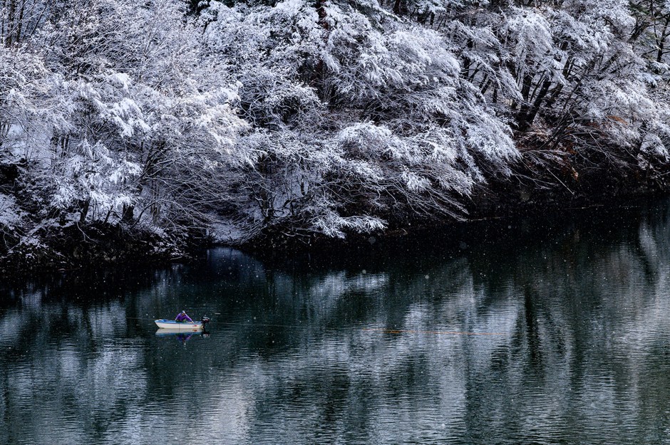 入選「雪の渓流」